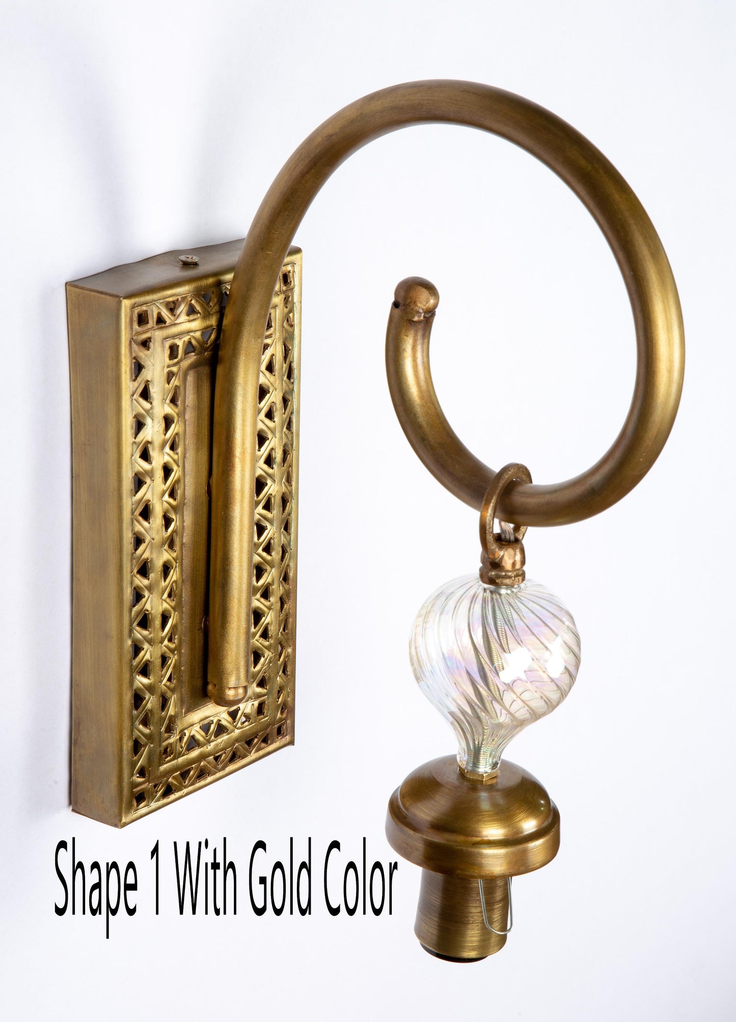 Wall Sconce Material:- its consist of Brass frame and glassblowing shades coming in clear glass but you still can make custom colors (custom colors is always available but please contact us to prepare and confirm the colors you would like).