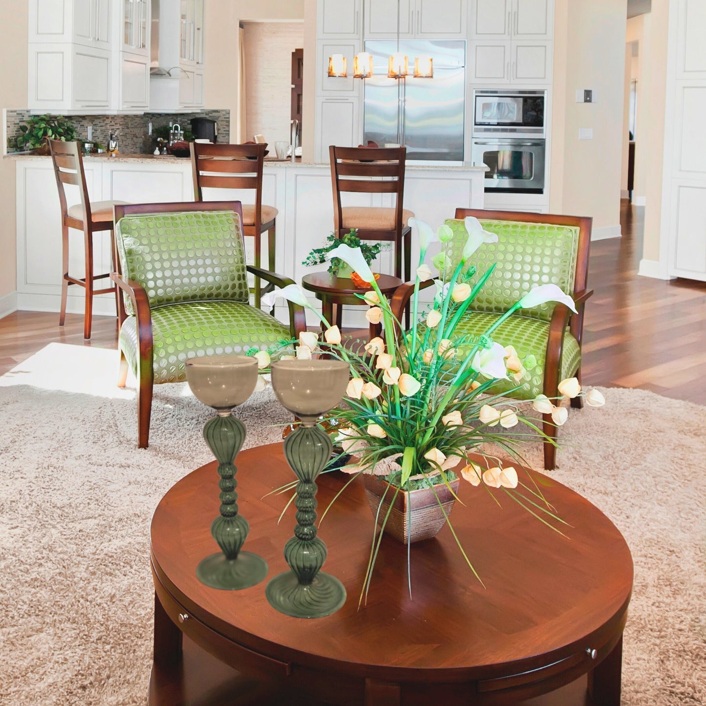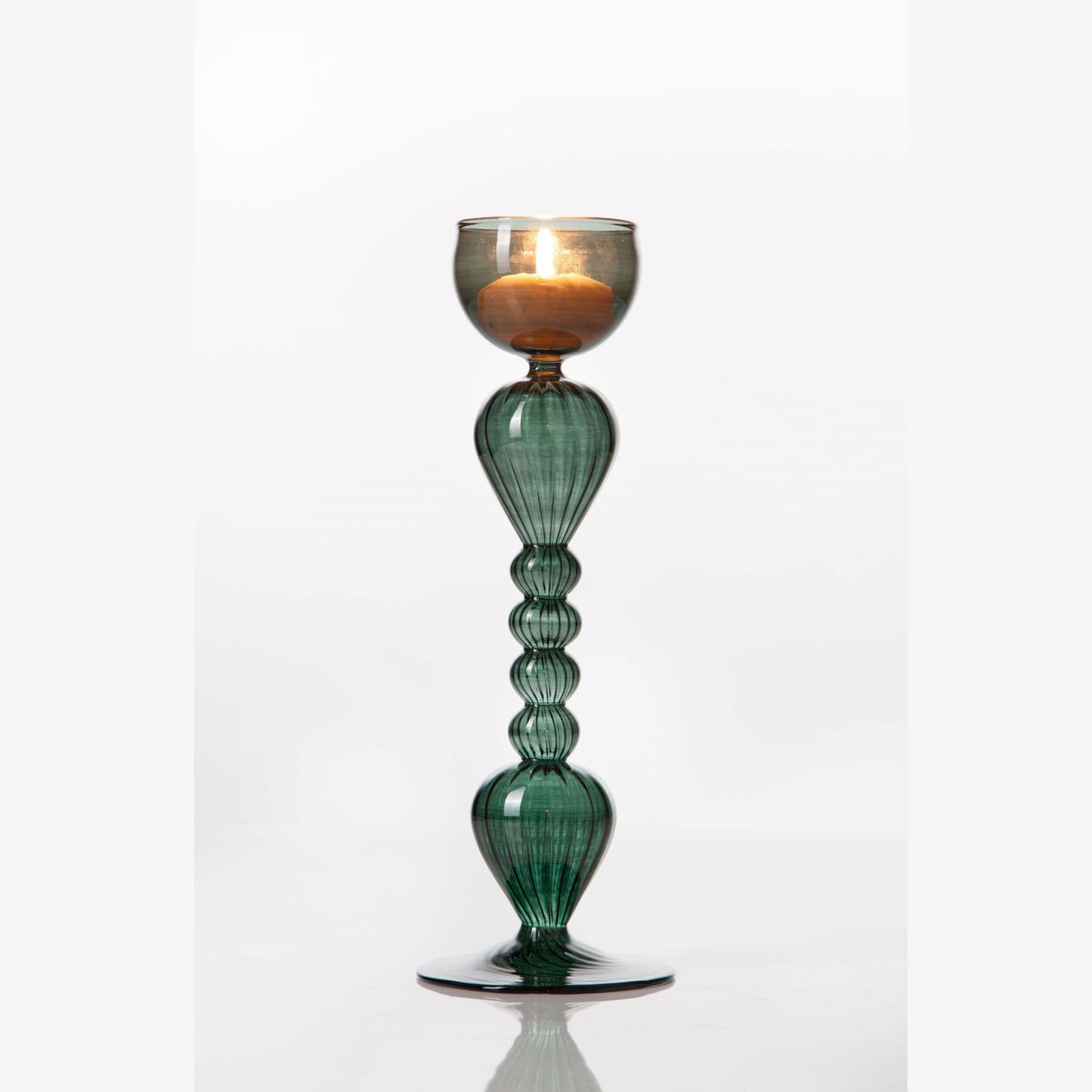 Vintage Green Hued Candle Holder - Romantic Candle Holder - Handmade Candle Stick Holder - Wedding gift - Glass Candle Holder - Antique Deco